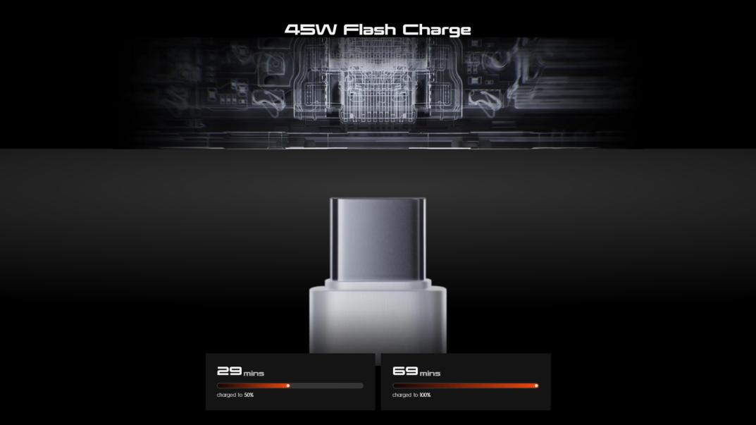 Charging(Battery) 45W wired, 50% in 29 min, 100% in 69 min 30W wireless (magnetic) 10W reverse wired
