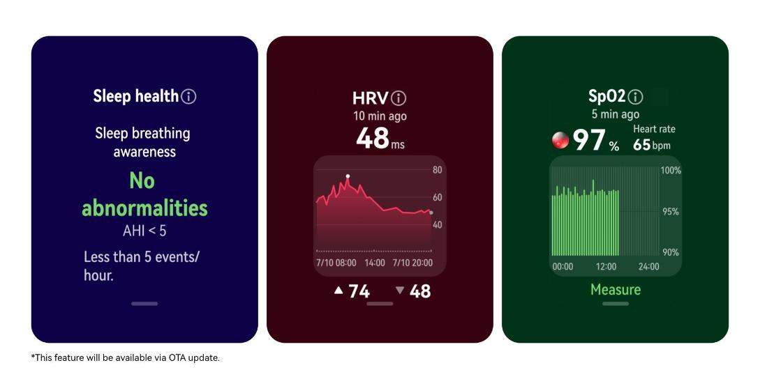 Sensors 9-axis IMU sensor (Accelerometer sensor, Gyroscope sensor, Magnetometer sensor) Optical heart rate sensor Ambient light sensor